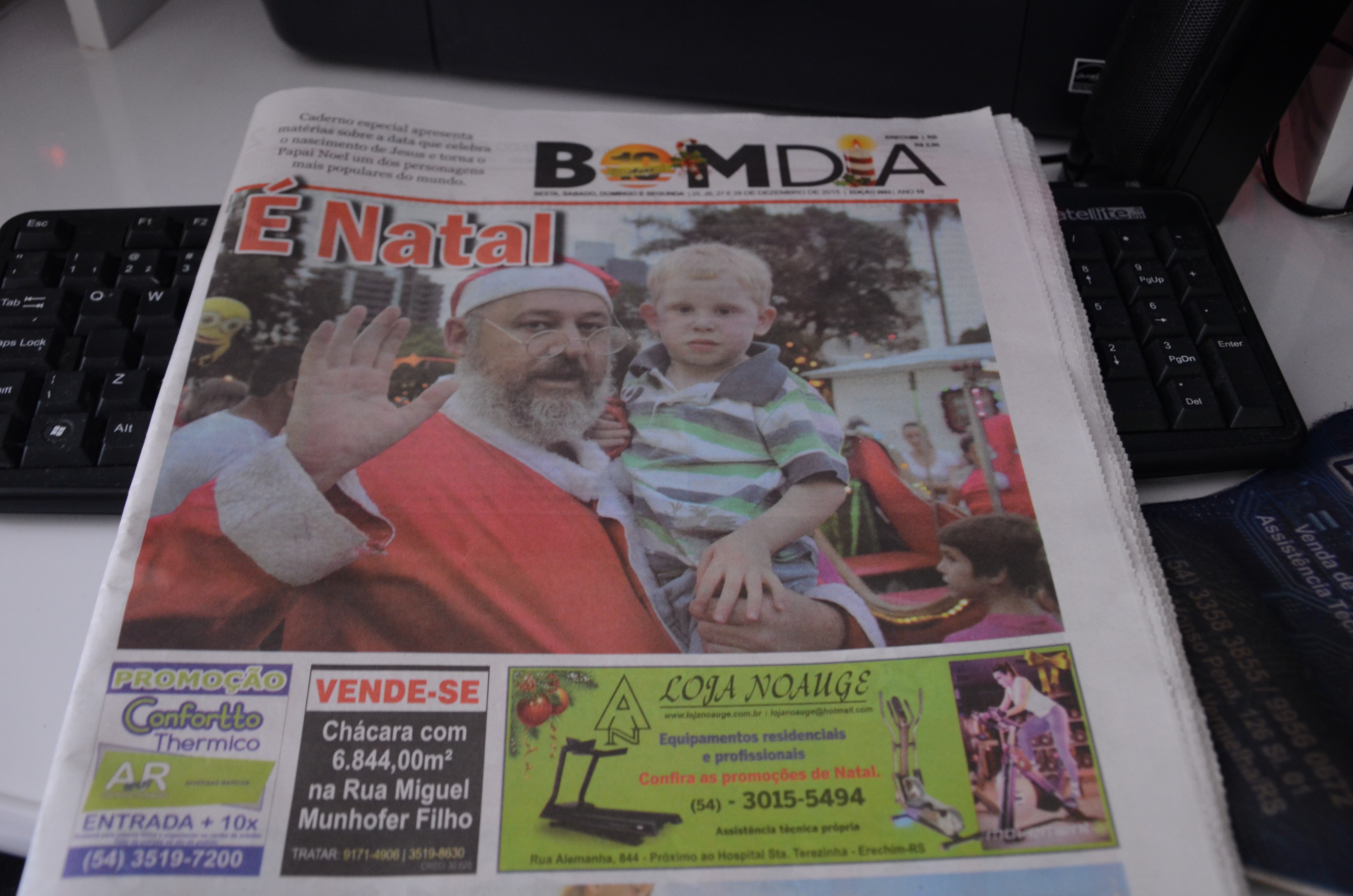 Já está circulando a edição impressa do Jornal Bom Dia, com caderno especial de Natal. Matérias especiais pautam a data que celebra o nascimento de Jesus e torna o Papai Noel um dos personagens mais populares do mundo. Entre os destaques está a história do bancário Cláudio Cristani (foto de capa), que há 14 anos se transforma no “Papai Noel do trenó”, circulando pelas ruas de Erechim.