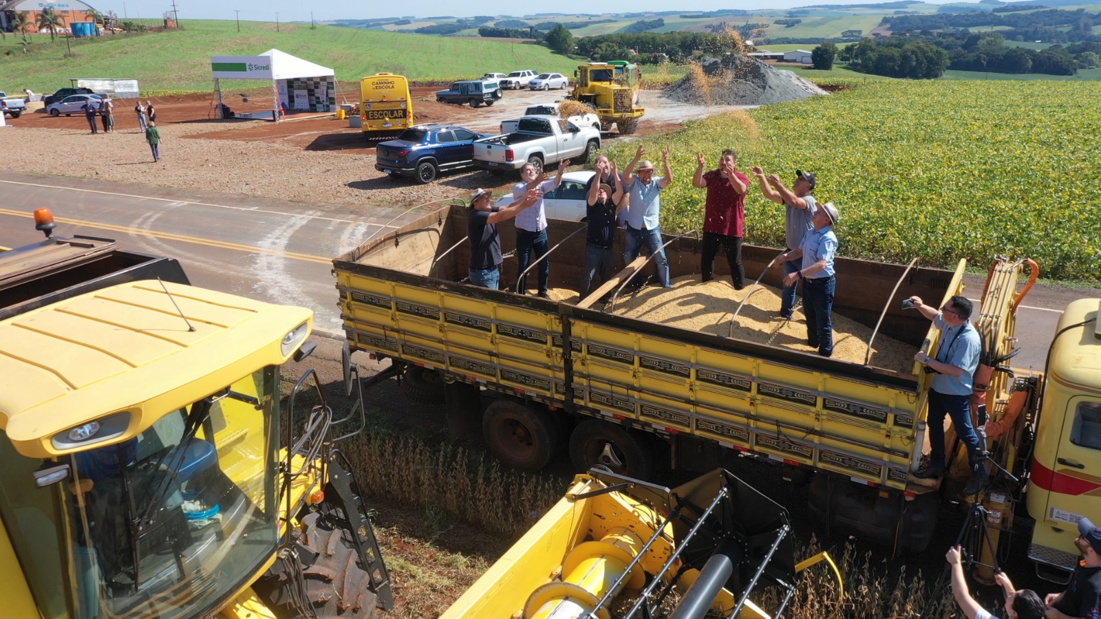 A Abertura da Colheita da Soja em Ipiranga do Sul aconteceu na sexta-feira, 24, na propriedade de Celso Beledeli, às margens da ERS 475. Promovida pela Secretaria da Agricultura do município, o ato contou com autoridades regionais, entidades, empresas parceiras da agricultura, servidores municipais, comunidade, professores e estudantes da Escola Municipal Dom João Becker.