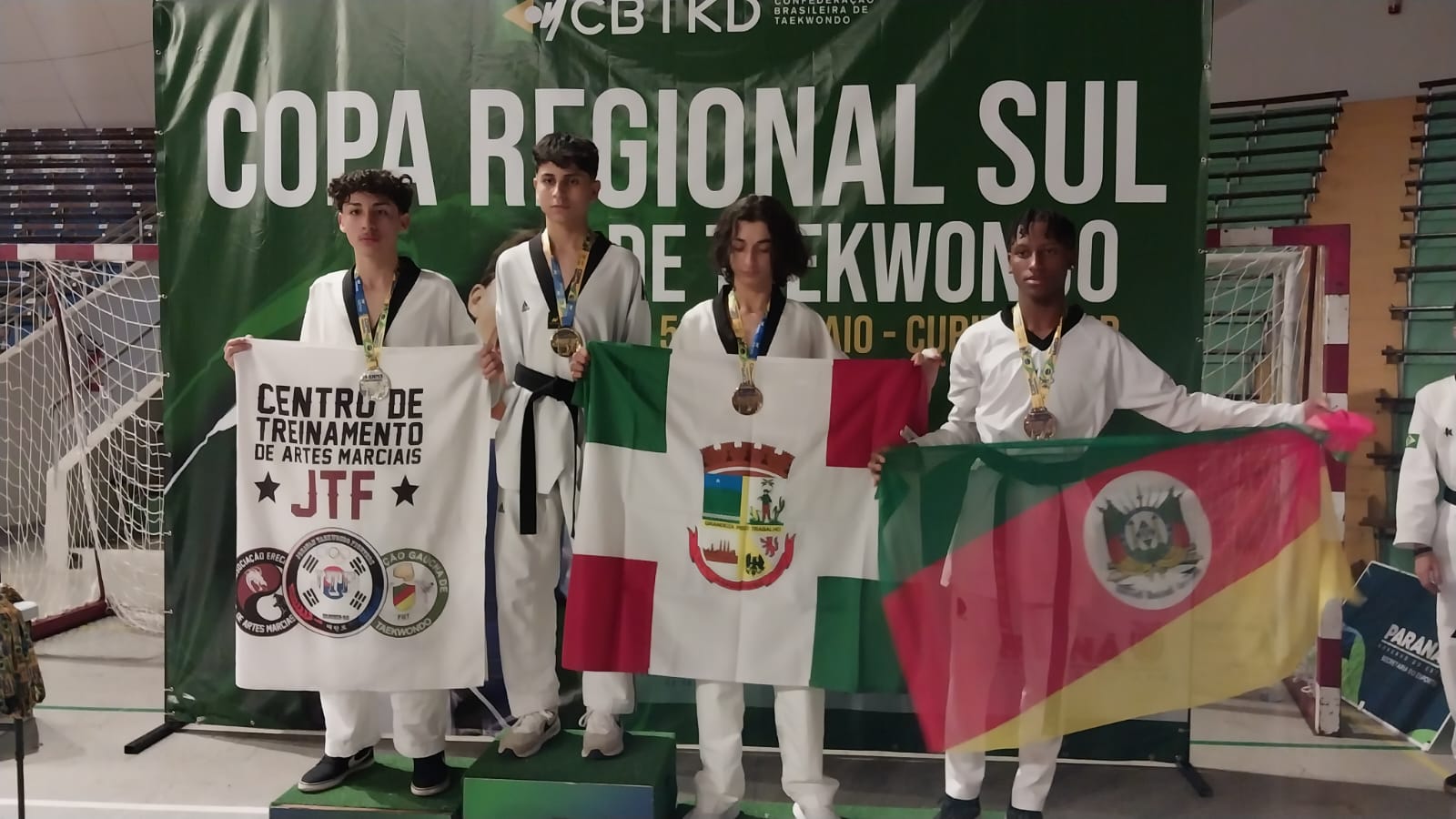 Oito atletas da Associação Erechinense de Artes Marciais receberam medalhas nas suas categorias na Regional Sul do Ranking Nacional de Taekwondo, que aconteceu no último fim de semana em Curitiba. Ao todo, a entidade esteve representada por 11 atletas, que são treinados pelo mestre Jonatan Silva. Confira os atletas que receberam medalhas: