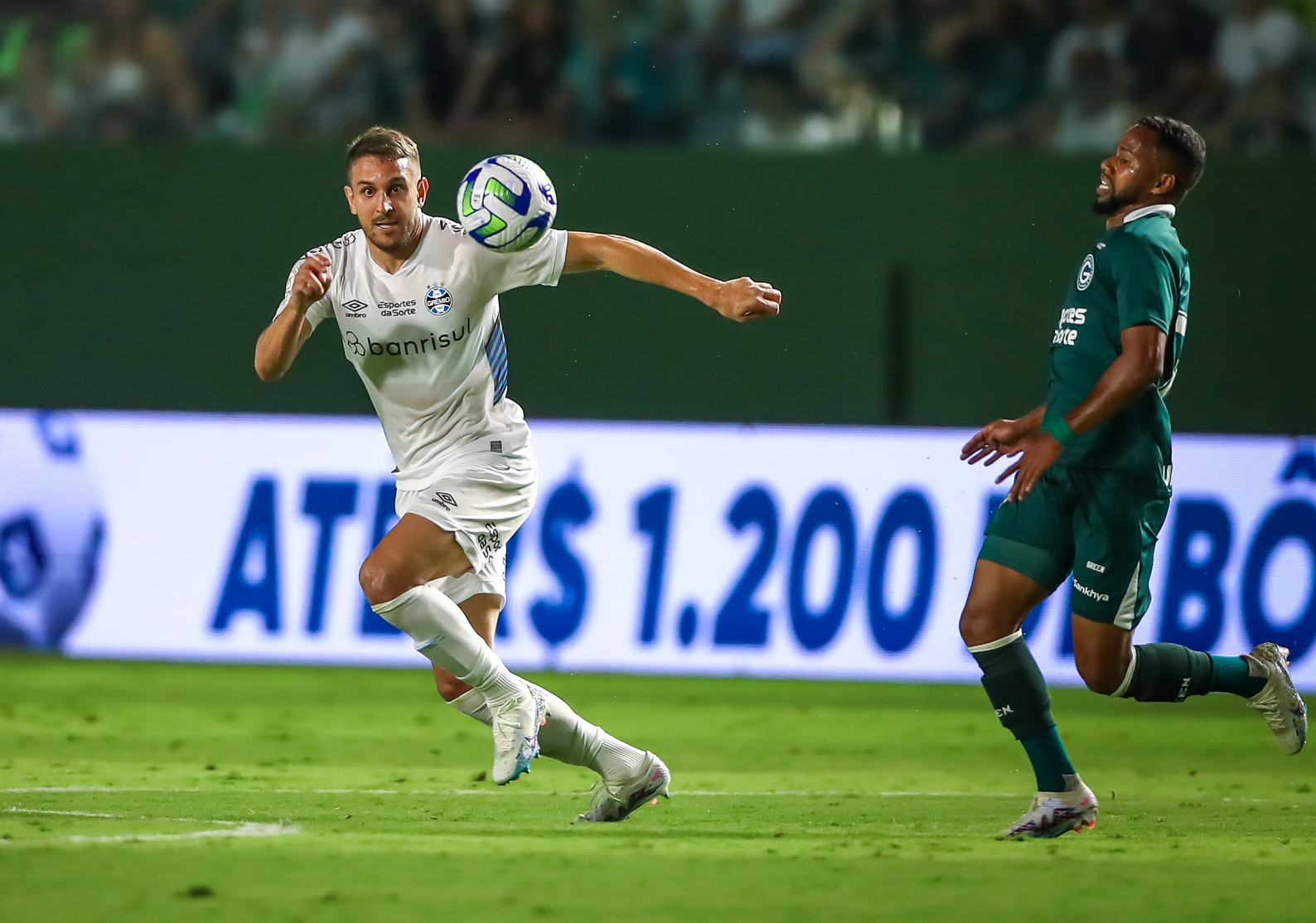 Aos 31’, após cobrança de escanteio, Matheus Babi subiu mais que todo mundo e, de cabeça, abriu o placar. O Tricolor tentou reagir e aos 35’, Ferreira acertou o travessão em chute da entrada da área. Aos 45’ foi a vez do Goiás carimbar o travessão. E aos 48’, o Grêmio teve escanteio a seu favor e após cobrança de Ferreira, André subiu mais que a defesa e cabeceou com força para deixar tudo igual no placar.