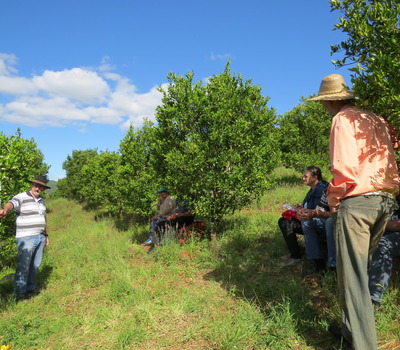 Manejo do pomar de citros, controle da pinta preta e sucessão familiar foram os temas tratados em Tarde de Campo sobre Citricultura realizada em Marcelino Ramos, na última quinta-feira (1º). A atividade integra a programação em comemoração aos 50 anos de instalação do Escritório Municipal da Emater/RS-Ascar em Marcelino Ramos. Mais de 30 produtores ligados à atividade participaram do evento sediado na propriedade da família Schneider, na comunidade Teixeira Soares, que já está na terceira geração.