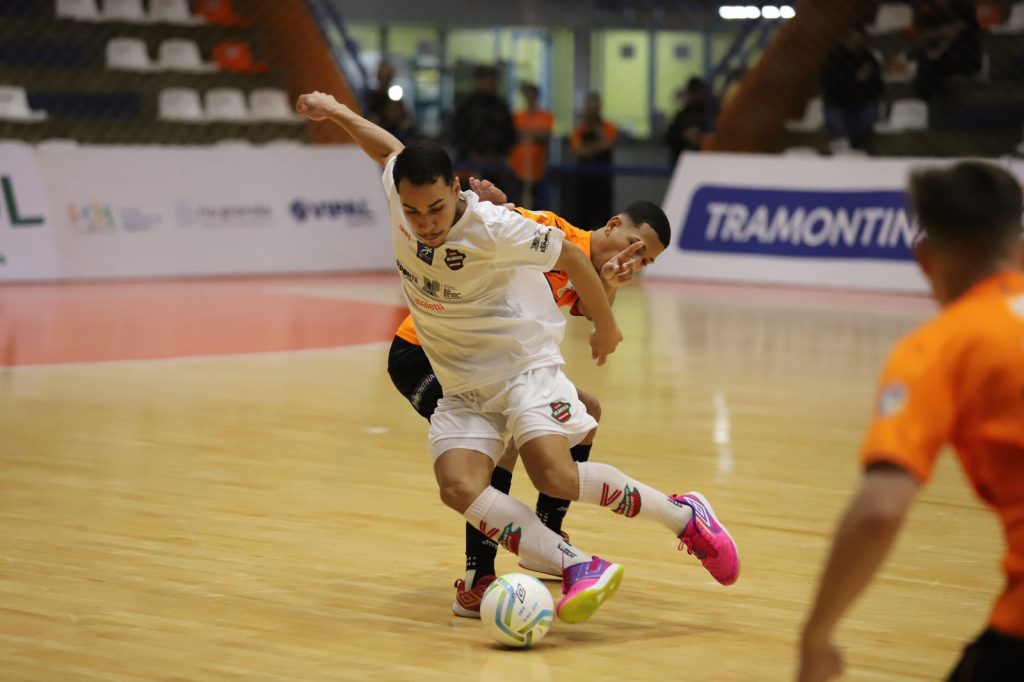 Mesmo atuando fora de casa, o Atlântico começou melhor o jogo. E conseguiu abrir o placar, aos 10min38, quando Pedro Victor aproveitou roubada de bola e do meio da quadra tocou por cobertura para fazer 1 a 0.