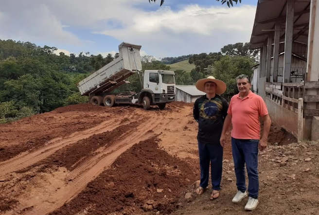 O prefeito de Aratiba, Gelson Carbonera, e o secretário de Obras, Saulo Tamanho, e o secretário de Agricultura, Cleimar Presotto, estão acompanhando todos os serviços.