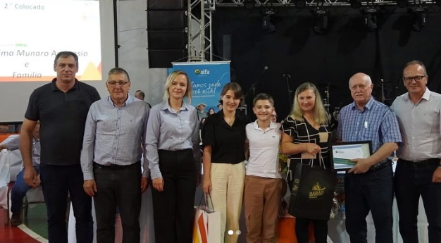 Foram premiados os 10 melhores avicultores do Rio Grande do Sul, do sistema Aurora Coop, resultados de conversão alimentar em 2024. A cerimônia, com a participação de autoridades, técnicos e criadores, foi realizada no sábado, 25, durante a 27ª Festa do Frango, na comunidade da Sérvia, Barão de Cotegipe. Receberam o certificado duas famílias de Aratiba, em 2º lugar, Loeni Fátima Munaro Ambrósio, e em 5º lugar, Darlei Libero.