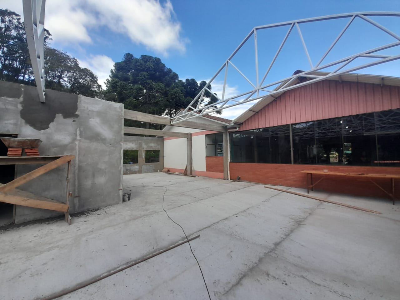 O mestre de obras, Sergio da Rosa, afirma que as fundações já foram feitas, as paredes já estão erguidas, com toda infraestrutura. “Já começamos a rebocar as paredes, vamos dar início a cobertura deste espaço novo. Depois de concluir esta parte, vamos fazer salas específicas na parte da frente, a sala dos professores, que hoje não tem, sala para aluno especial, entre outras melhorias”, comenta.