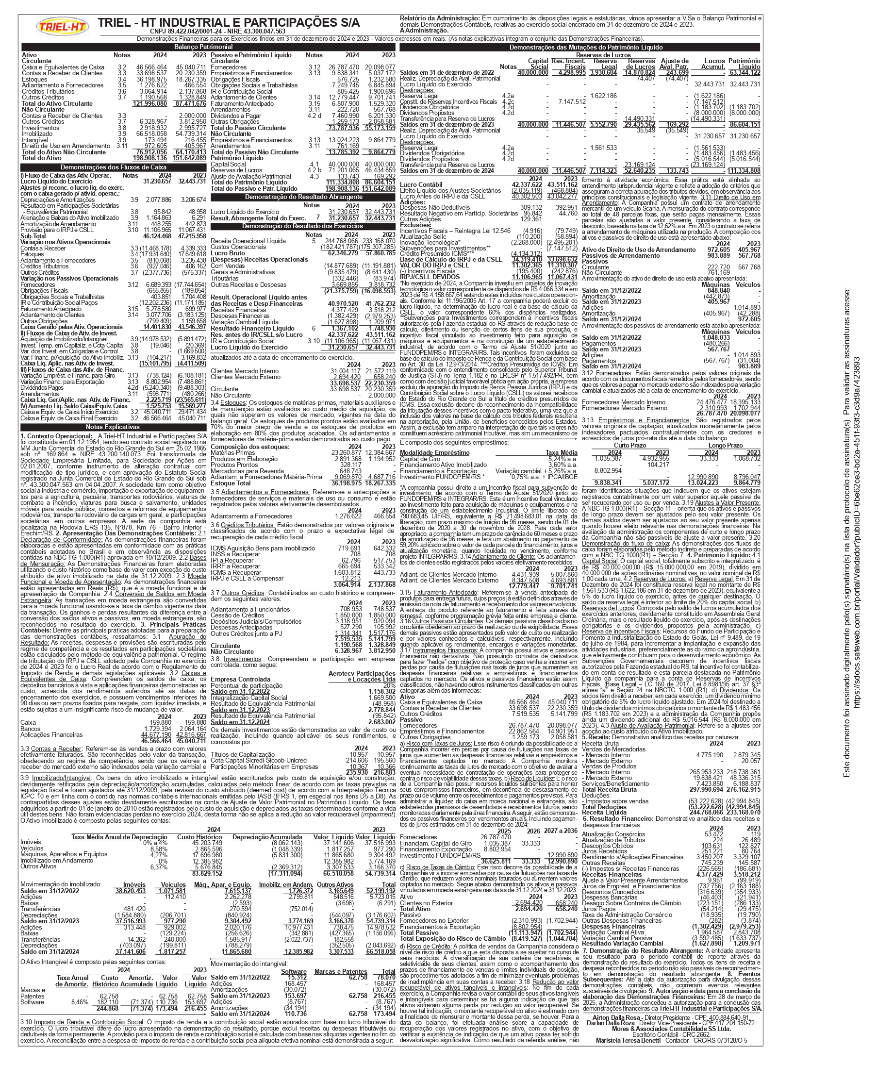 Demonstrações Financeiras para os Exercícios findos em 31 de dezembro de 2024 e 2023 - Valores expressos em reais.