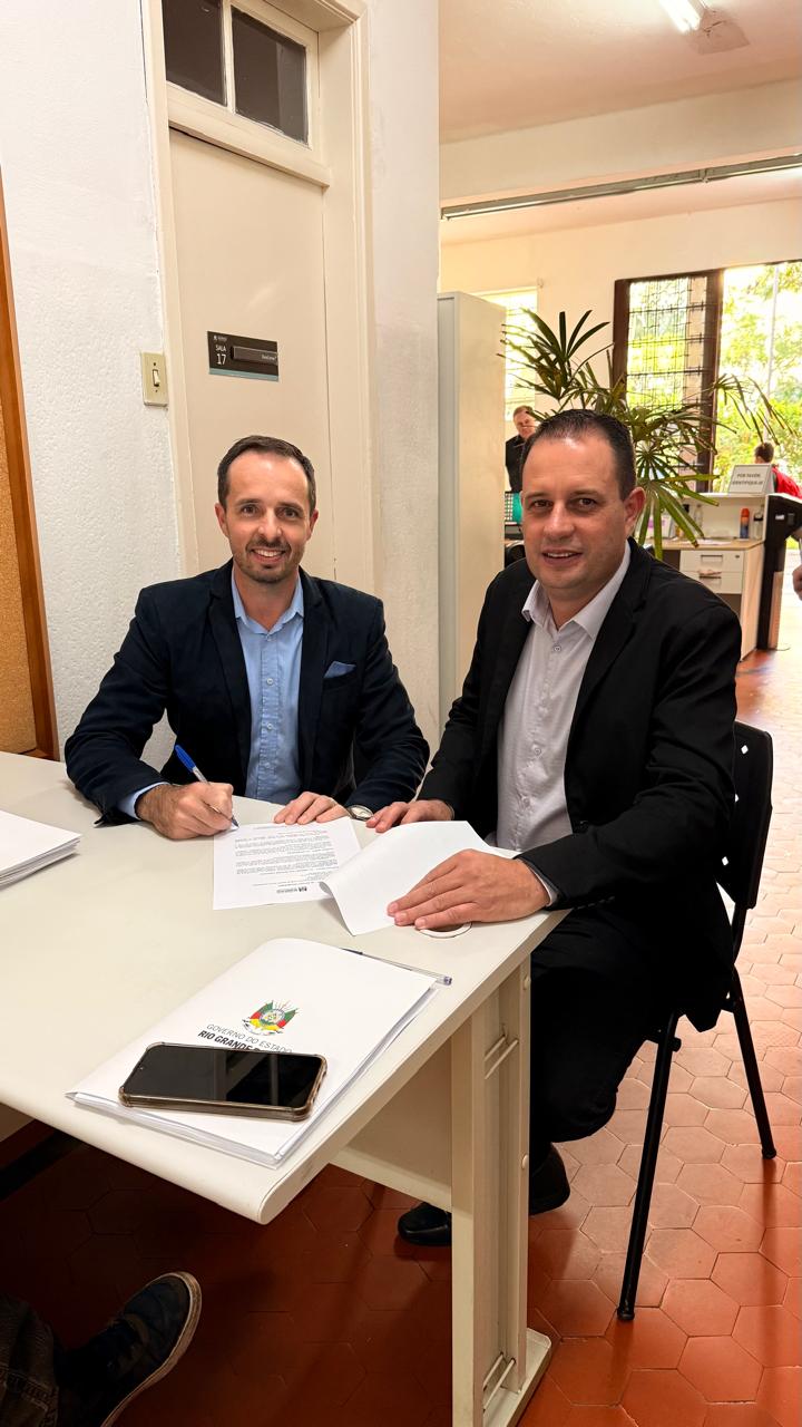 O prefeito de Cruzaltense, André Gazzoni, acompanhado do vice-prefeito, Rodrigo Sartori, esteve em Porto Alegre, na manhã dea quinta-feira (15), para a assinatura de um importante convênio junto ao Governo do Estado. O município foi contemplado com o valor de R$ 300 mil, que será destinado à recuperação das estradas rurais, beneficiando diretamente os produtores e moradores do interior.