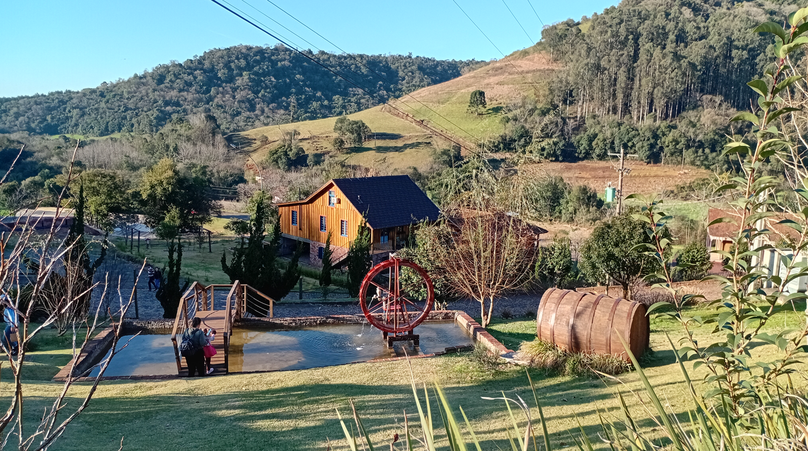 O período de férias escolares abriu espaço para que famílias aproveitassem o passeio. Ao longo do caminho pela RS-420, era possível observar áreas agrícolas, pequenas propriedades rurais, casas coloniais, construções históricas e elementos naturais que fazem parte da identidade da região.