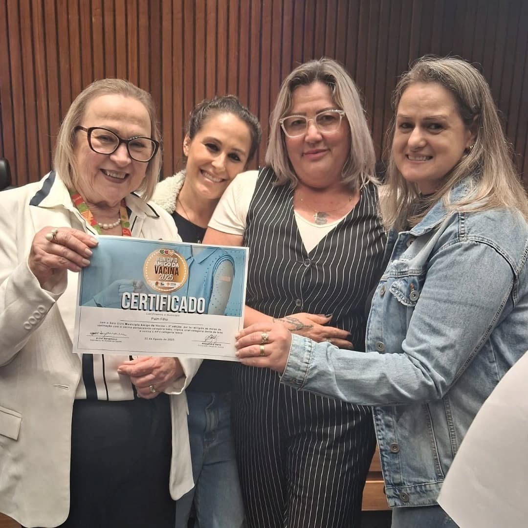 O município de Paim Filho foi novamente reconhecido pela alta performance em imunização e recebeu, pelo segundo ano consecutivo, o Selo Ouro Amigo da Vacina. A cerimônia de entrega ocorreu na quarta-feira, 20 de agosto, em Porto Alegre, reunindo representantes de municípios de todo o estado.
