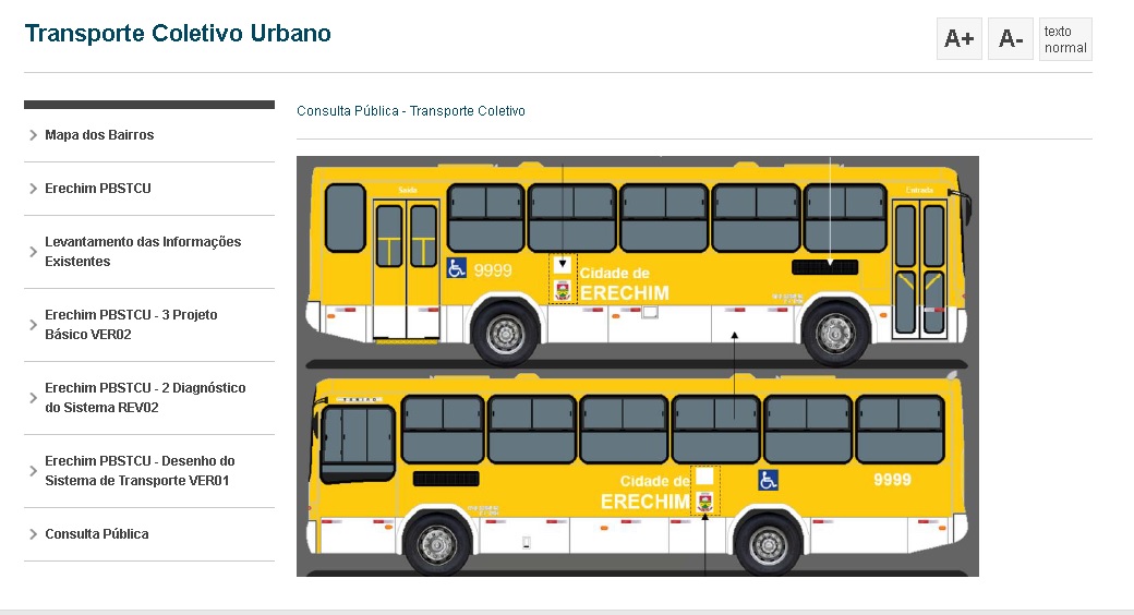 O transporte coletivo urbano de Erechim está na pauta de uma consulta pública que pode ser acessada e respondida no site da prefeitura de Erechim. A iniciativa considera como ponto de partida o cenário atual do transporte coletivo, no qual “a tarifa praticada é de R$2,60, sem atualização desde 2014 e em função da nova licitação da empresa prestadora de serviço, onde a nova tarifa básica será de R$ 2,85 para passagem integral e de 50% sobre o valor da passagem para os estudantes e gratuidade para pessoas a partir de 65 anos”.