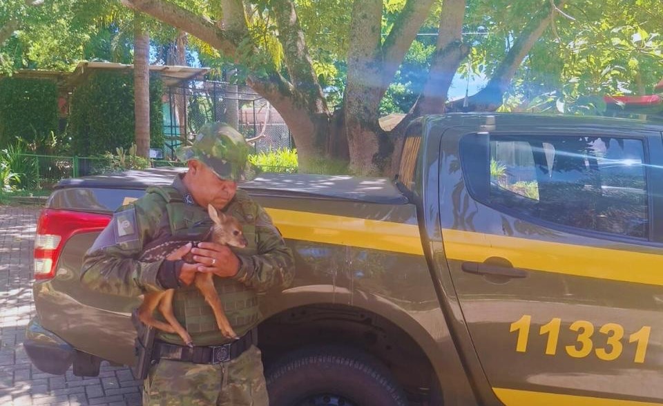 A Brigada Militar, por meio do 3º Batalhão de Polícia Ambiental (BPAmb BM), resgatou na manhã do último domingo, um filhote de Veado-catingueiro (Subulo gouazoubira), em Entre Rios do Sul.