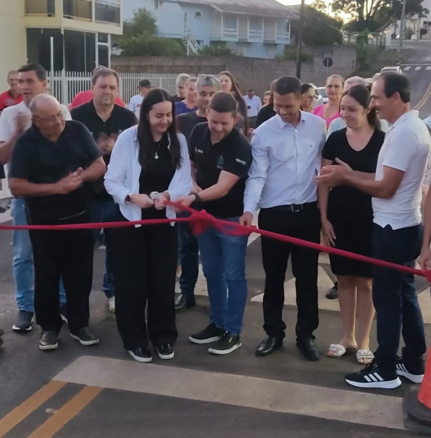 A obra de pavimentação de parte da Rua Nilo Peçanha, em Viadutos, foi inaugurada na semana passada, em solenidade que reuniu lideranças políticas, representantes comunitários e moradores. O ato contou com a presença da deputada federal Franciane Bayer, do prefeito Giovan André Sperotto, do vice-prefeito Sérgio Bebber, de secretários municipais e demais autoridades.