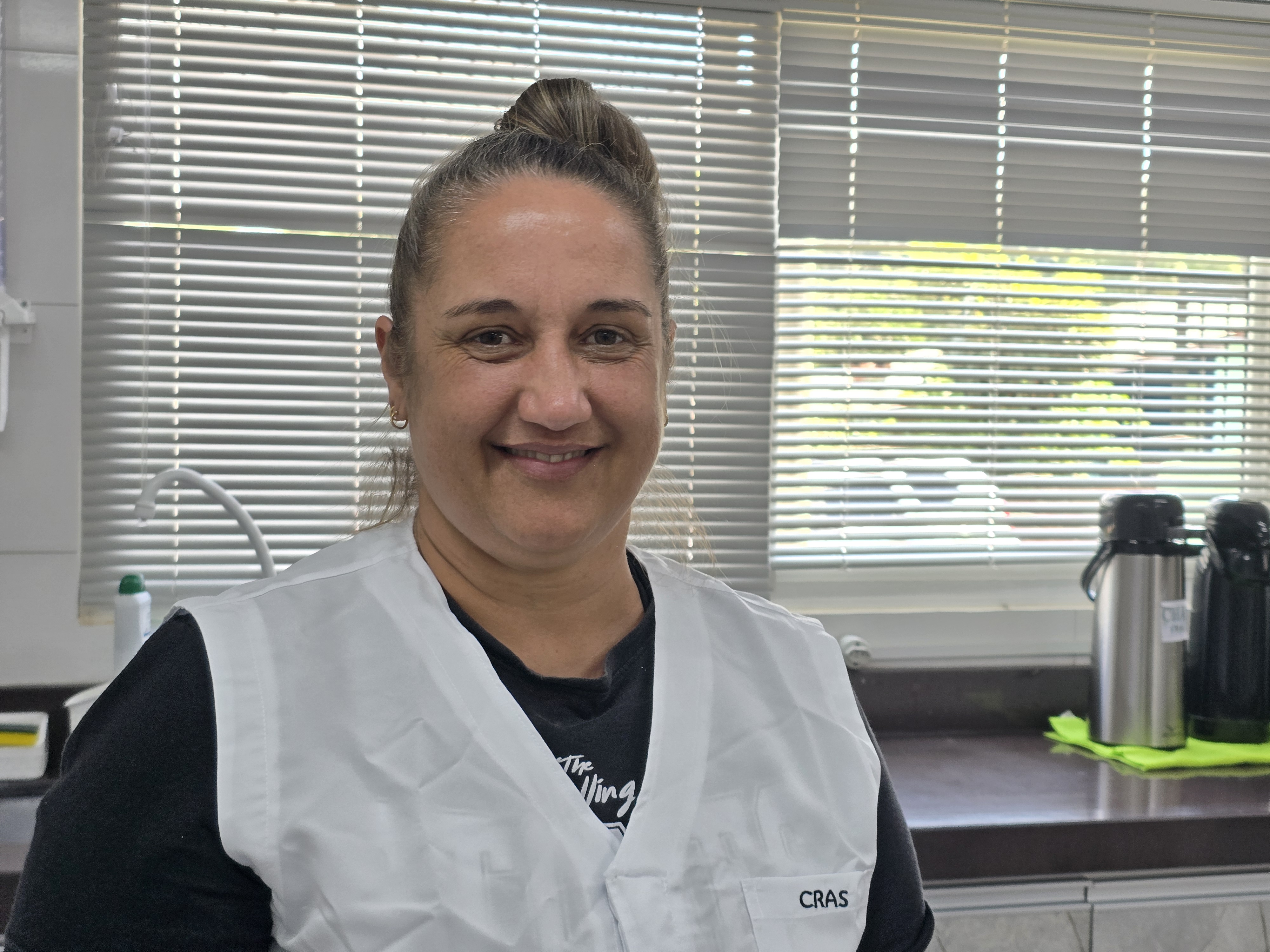 Carinhosa e atenciosa, Andrea diz que gosta de conversar com as pessoas e saber como elas estão, criando vínculos de cuidado e acolhimento no ambiente de trabalho.