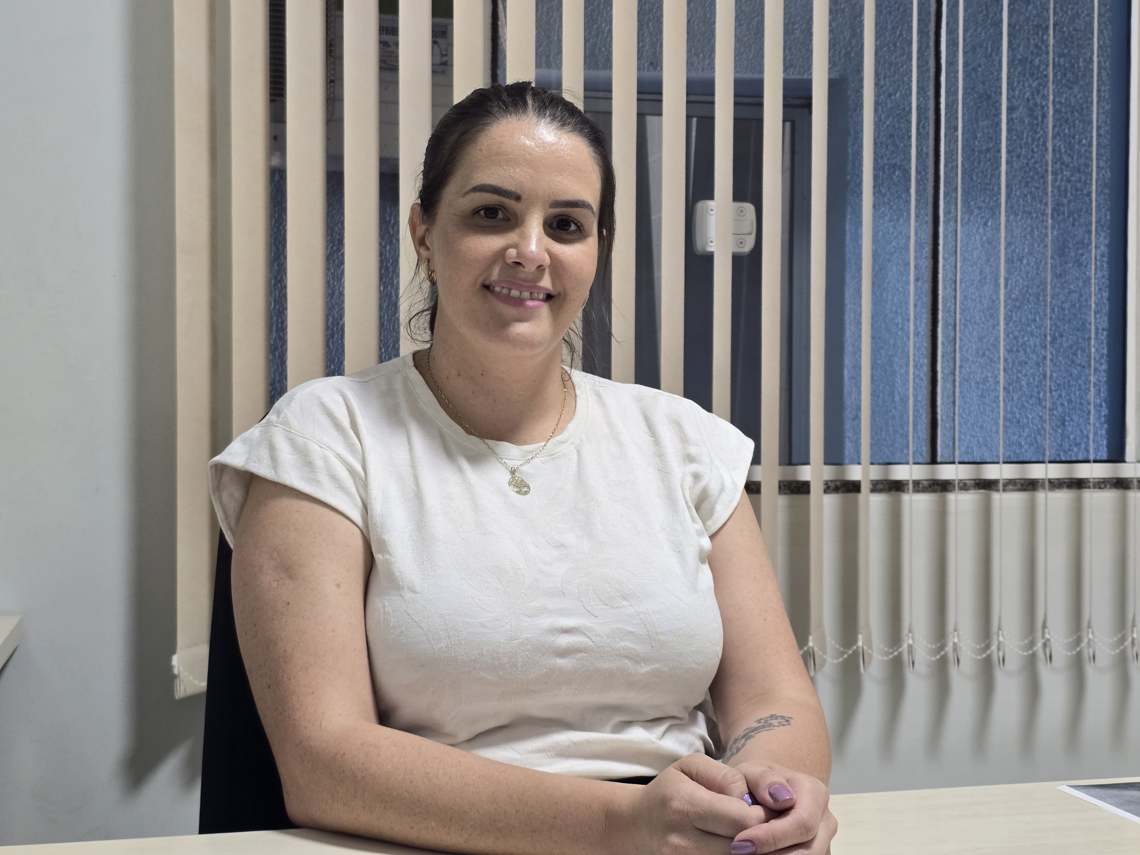Aline trabalha na área da saúde pública há cerca de dois anos e oito meses e está à frente da Secretaria de Saúde há um ano e sete meses. Embora não seja da área de formação, diz que desenvolveu grande identificação com o trabalho ao longo do tempo. “Comecei e fui criando muito amor pela profissão. Eu gosto muito de lidar com pessoas”, conta.