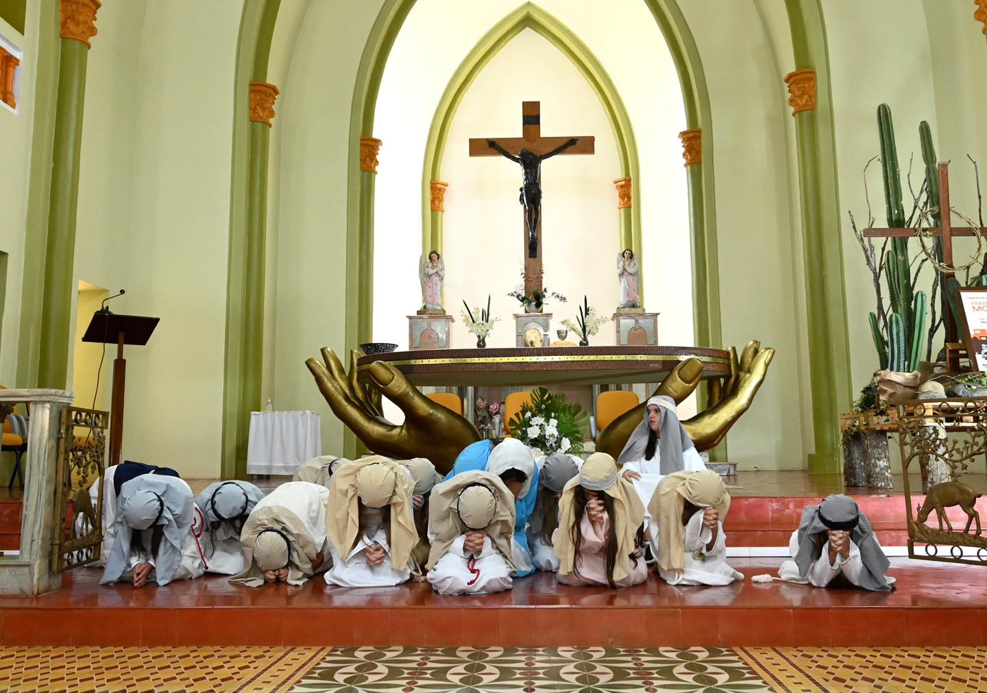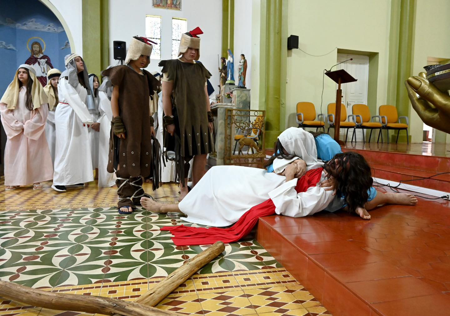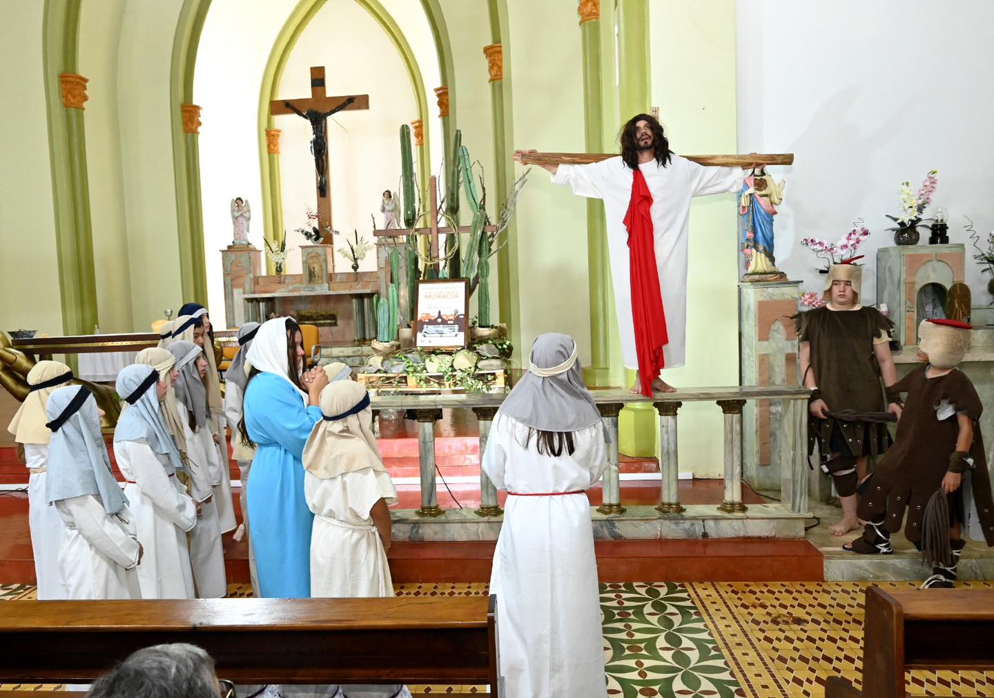 A apresentação relembrou um dos momentos mais marcantes da fé cristã: a paixão, morte e ressurreição de Jesus Cristo. Por meio das cenas, os alunos retrataram desde a Última Ceia, passando pelo julgamento e a crucificação, até a mensagem de esperança com a ressurreição.