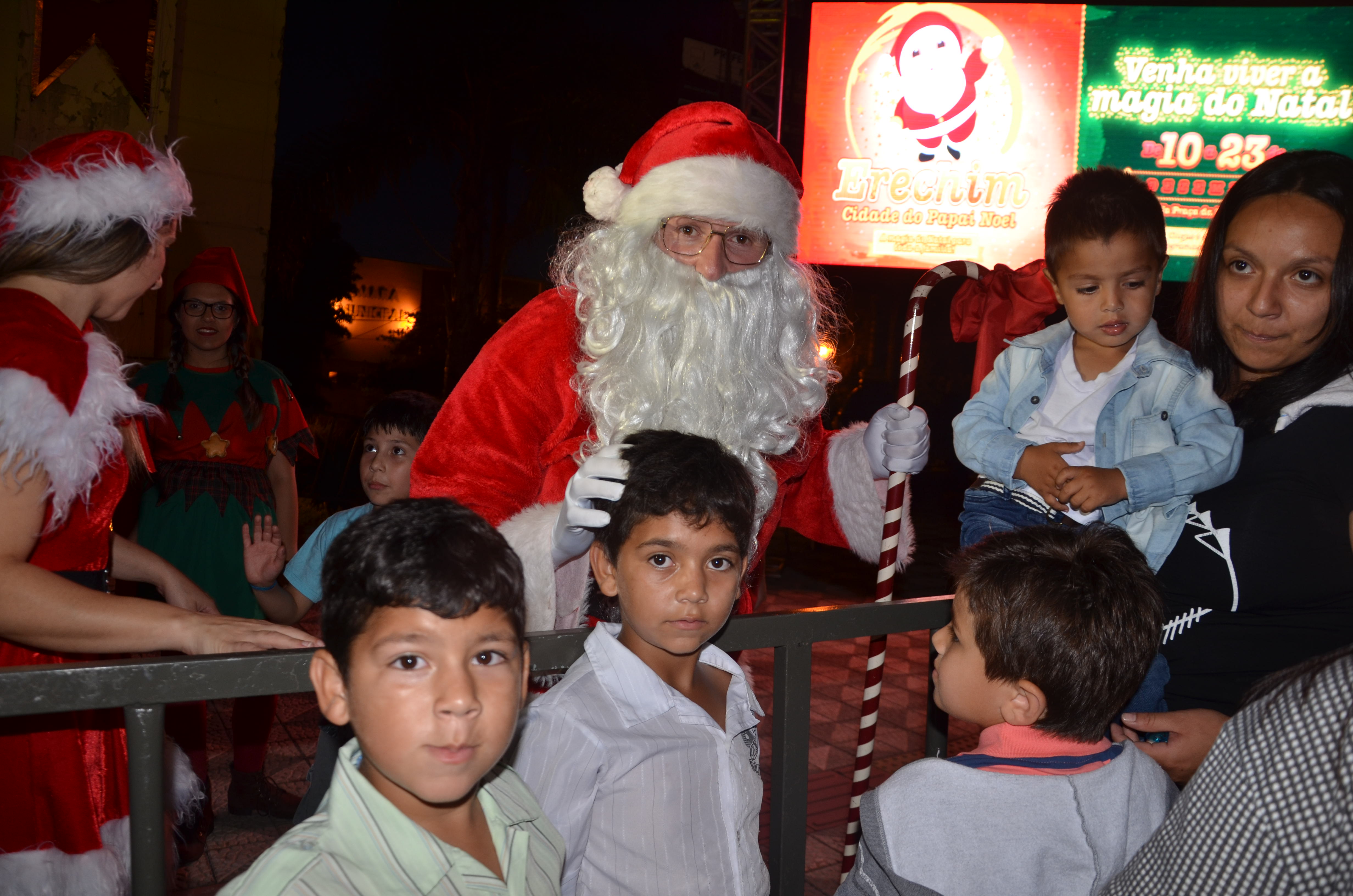 Erechim já é a cidade do Papai Noel. As chaves da “Capital da Amizade” foram entregues pelo prefeito Paulo Polis na noite deste sábado (10) na abertura da programação do Natal 2016. A previsão de chuva não se confirmou e a temperatura agradável permitiu que muitas famílias fossem à Praça da Bandeira. Problemas técnicos atrasaram o início das apresentações.Não houve queima de fogos de artifício, conforme anteriormente anunciado.