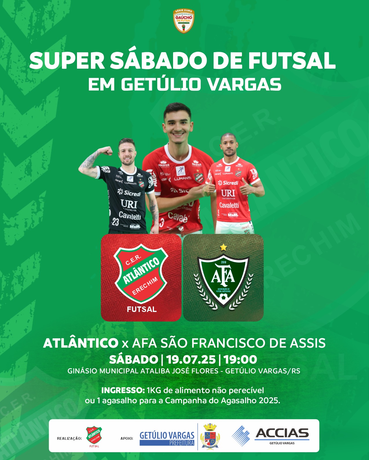 Galo volta amanhã à quadra, em Caçapava do Sul, para defender a liderança da Série Ouro