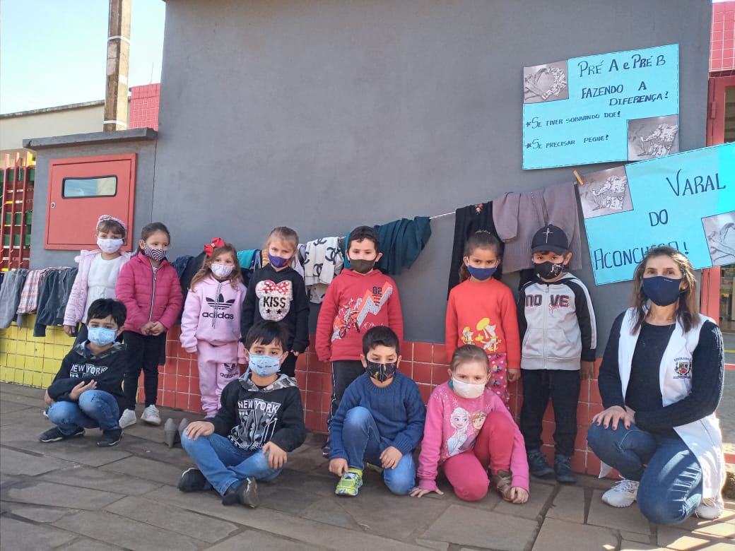 Ação Social de arrecadação de alimentos, desenvolvida na Escola 11 de Abril, pela professora Rosane Rech e a turma do 4º ano